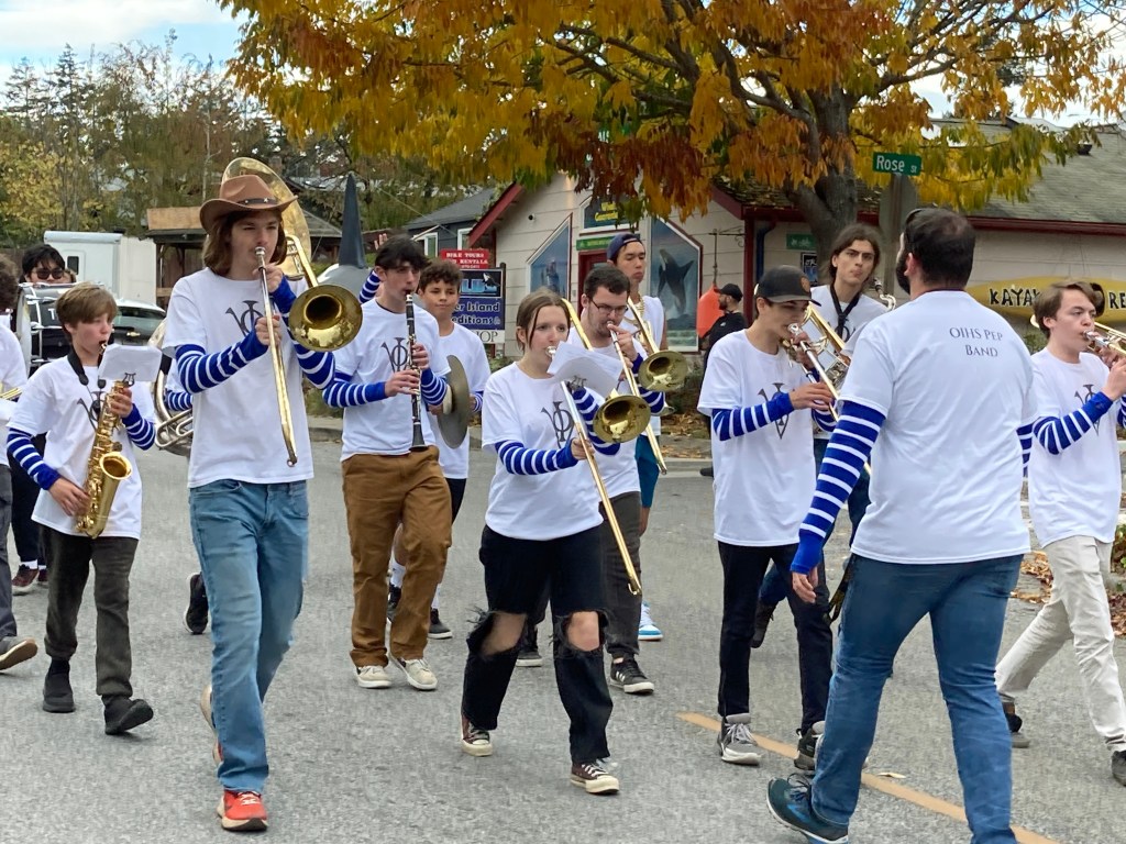 This fall, the Orcas Island School District music program is moving to a quick beat. In October, high school musicians entertained family and community in the annual Costume/Pops Concert, and the high school Pep Band marched and played at Homecoming festivities on the Village Green. Bravo!
