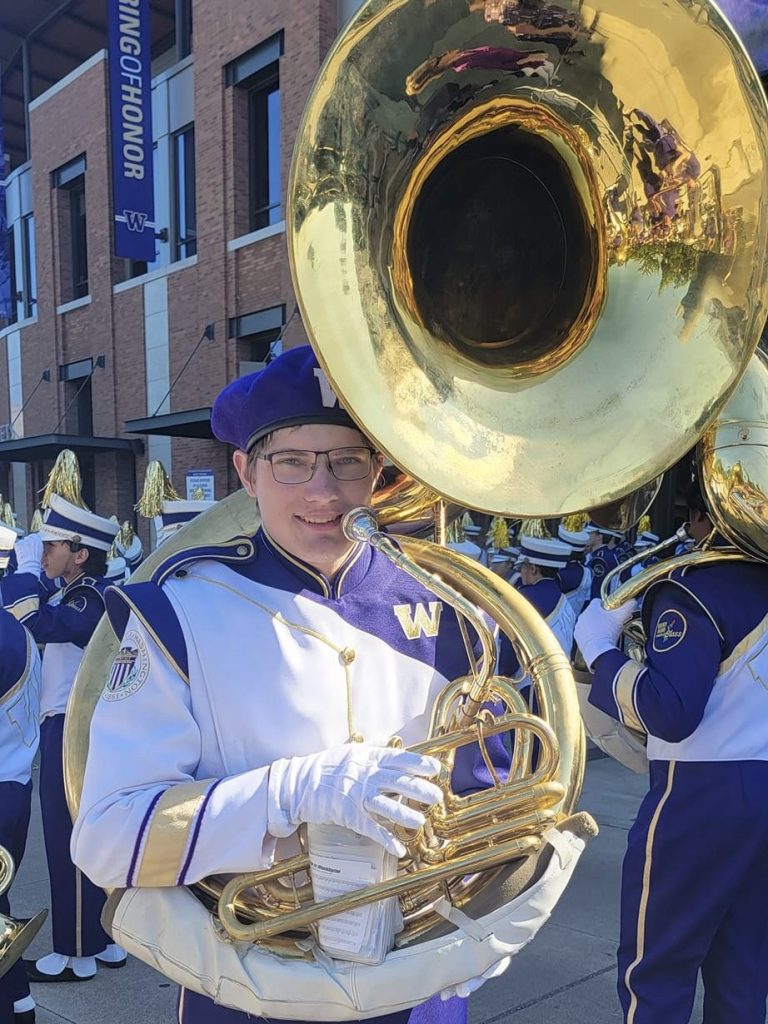 Congratulations to 2023 graduate Paxton White, who has joined the UW Husky Marching Band, a deciding factor in his acceptance to the university. White played tuba throughout his time at OIHS. “School music provides a place to come together with friends to do something we all enjoy,” he said.