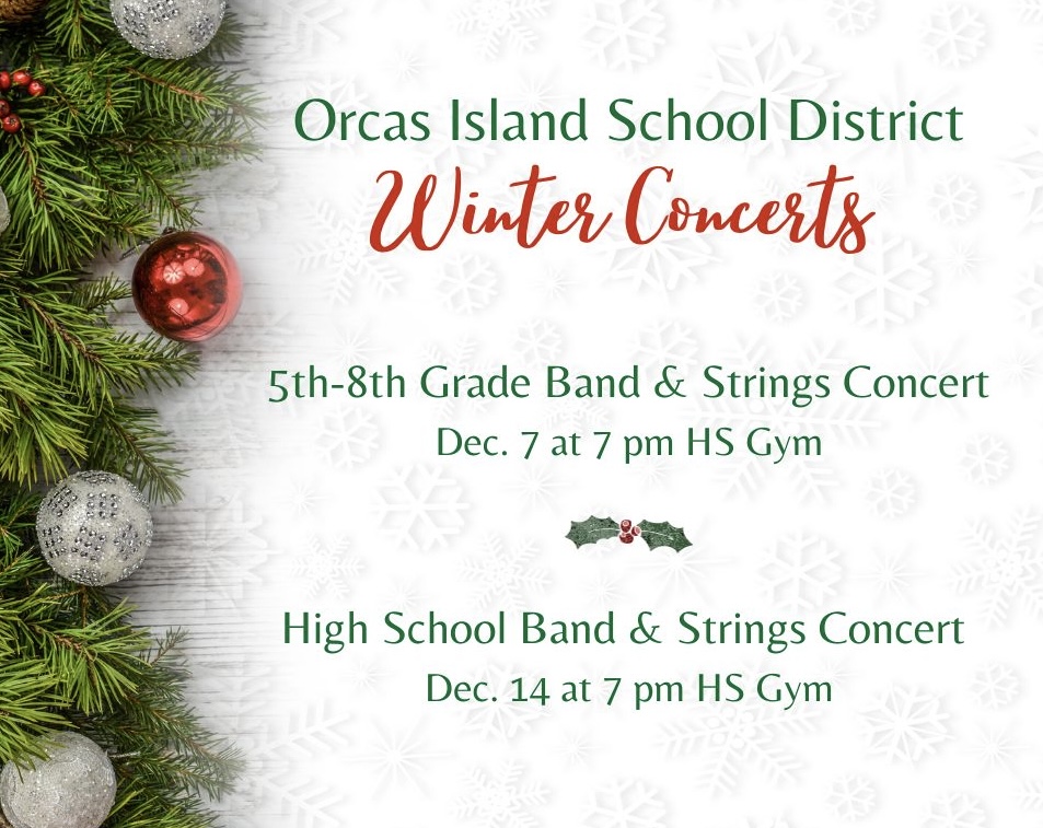 - High School Band & Strings Concert — Thursday, December 14 at 7pm in the HS Gym