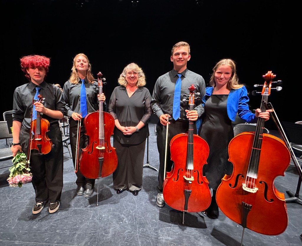Among this year’s cohort of graduates, seven are student musicians who have dedicated themselves to the rigor and practice of learning to play a musical instrument throughout all four years of high school. They are: Forest Frausto, Henry Walker, and Calvin Saxe, in the band program, and Scarlett Coffey, Solianna Halabisky, Dagny Kruger, and Kristian Freeman, in strings.