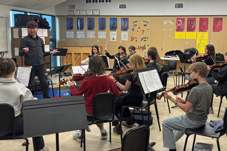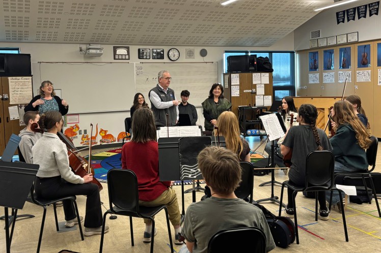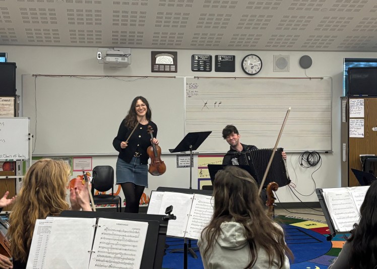 Orcas Island Chamber Music Festival (OICMF) collaborated with Orcas Island School District (OISD) to bring professional musicians, Iwo Jedynecki and Karolina Mikolajczyk, into school on Thursday, March 12, 2026, to provide master classes for Strings students from grades 4 through 12.