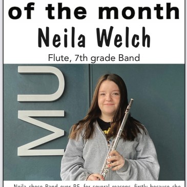 Congratulations, Scarlett! This high school junior credits school music for her music sight-reading skills, which she sees as a valuable language for connecting with musicians everywhere. She believes music is “a way to connect to cultures around the world.” Yes, indeed! School music matters. Save the date — Dec 14, for an evening Winter Concert … More October 2023 Music Student of the Month – Scarlett Coffey
